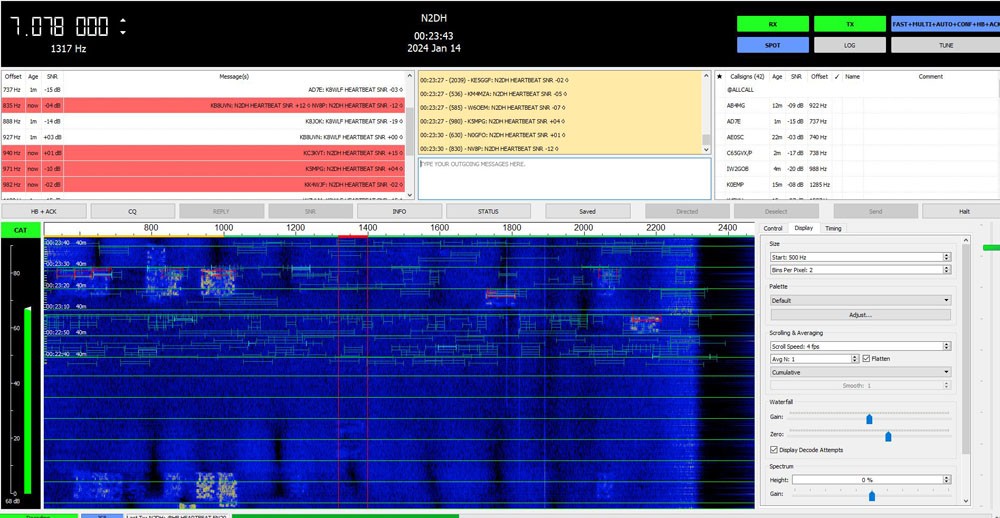 The user interface and operation of JS8Call is different than FT8. They look quite different, but I quickly got used to the new layout. Before writing this blog, I went on air to get some typical screen captures to share what I like about it and why I feel it important to share availability of this digital mode.