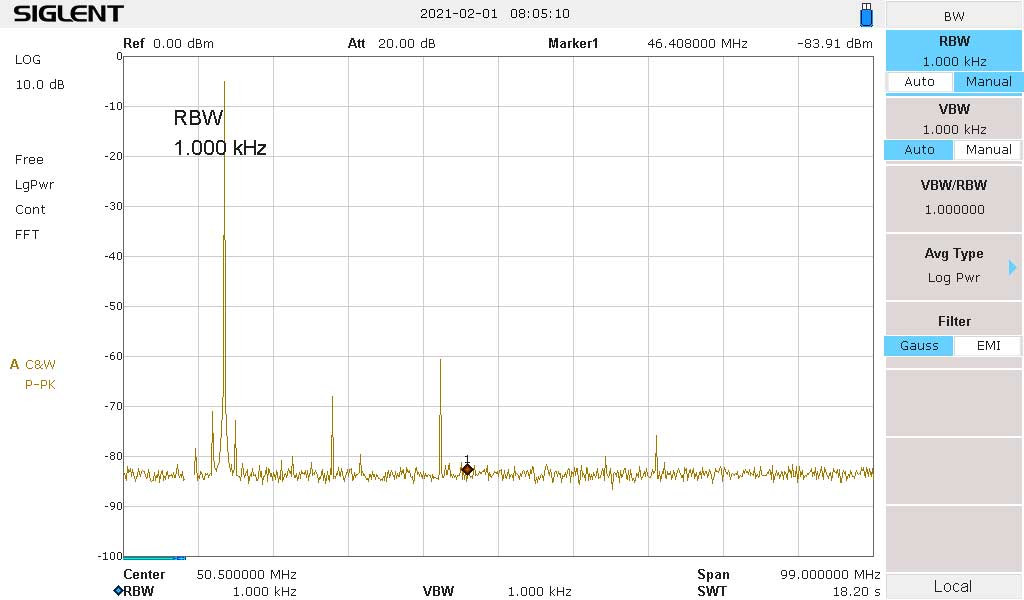This next video shows me testing the power output using a set of attenuators and a true RMS power meter. The test shows that on 14MHz. the unit produced just under 100Watts of power. The actual results had a attenuation of -55dB between the TX output and RMS power meter. The meter showed a -5.2dBm level so after the maths we have a recorded output of 49.8dBm. Since 50dBm is 100Watts, we did pass test by producing 100W of power.
